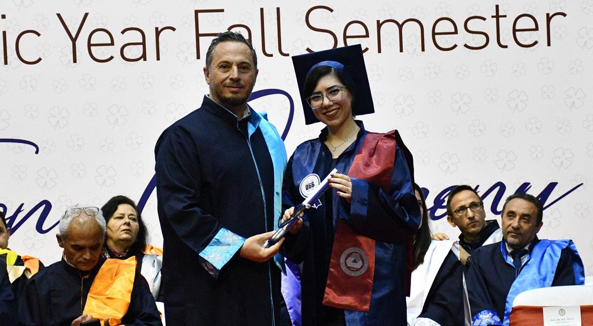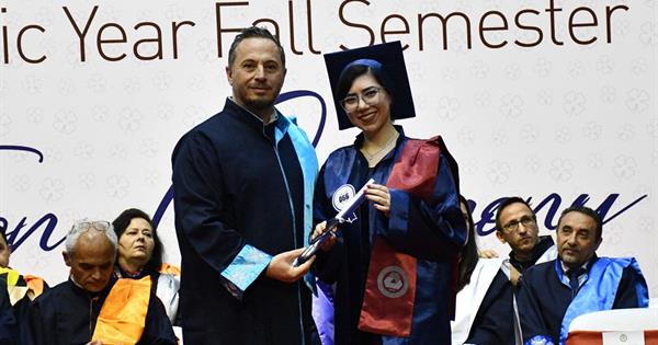 Following the speeches, top ranking students of the faculties and departments were presented with diplomas and awards. The ceremony continued with the presentation of diplomas to postgraduate students and awards to doctoral thesis supervisors. Then, undergraduate and associate degree program graduates received their diplomas. The ceremony concluded with a cap throwing session of students accompanied by Rector Prof. Dr. Hasan Kılıç and Vice Rector’s count down.