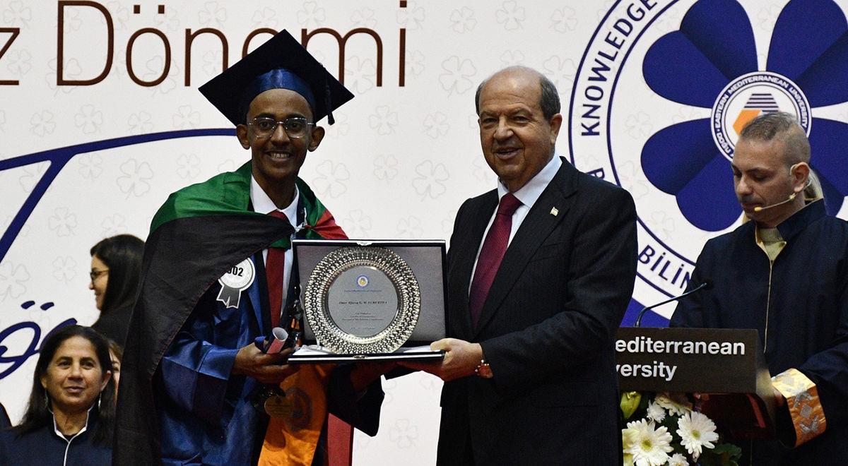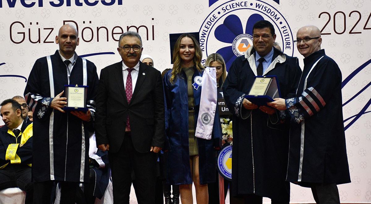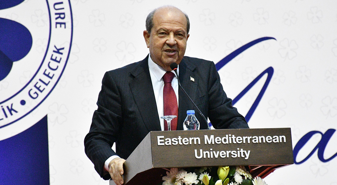 Present during the ceremony were; the President of the Turkish Republic of Northern Cyprus (TRNC) Ersin Tatar, TRNC Minister of National Education Nazım Çavuşoğlu, UBP Member of the Parliament and General Secretary Oğuzhan Hasipoğlu, CTP Member of the Parliament Teberrüken Uluçay, Famagusta District Governor Özden Keser, Famagusta Consul General İlyas Çetin, Officials from International Embassies, EMU Board of Trustees (VYK) President Dr. Erdal Özcenk, EMU Rector Prof. Dr. Hasan Kılıç, Girne American Univeristy Rector Prof. Dr. Serdar Yurtsever, Famagusta Section Commander Colonel Anıl Yıldız, Higher Education Planning, Accreditation and Coordination Council (YODAK) Member Prof. Dr. Remziye Terkan, Department of Culture Director Şirin Zaimağaoğlu, Presidency Advisor and EMU VYK Members Özgür Yuca and Server Karabacak, EMU Vice Rectors Prof. Dr. Osman M. Karatepe, Prof. Dr. Salih Katırcıoğlu, Prof. Dr. Sonuç Zorlu and Prof. Dr. Ali Öztüren, EMU Acting General Secretary Derviş Ekşici, Senate Members, Faculty Members, graduates and their families.